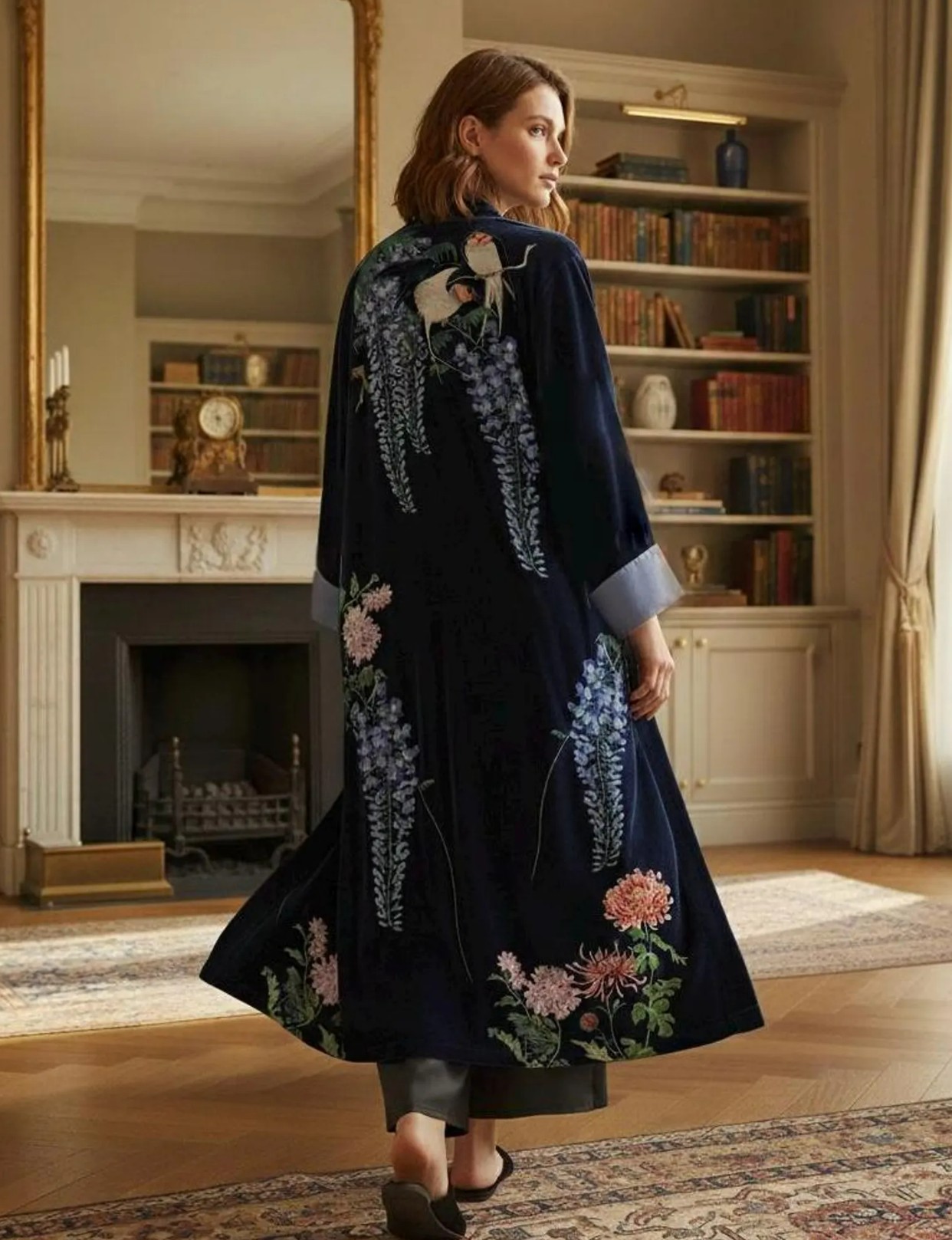 The velvet kimono features a stunning swallow and wisteria floral design inspired by classical Japanese art. Made from soft, premium velvet, it’s perfect as a luxury dressing gown, long kimono coat, or elegant loungewear for cosy evenings and relaxed mornings. A thoughtful, meaningful gift for her.